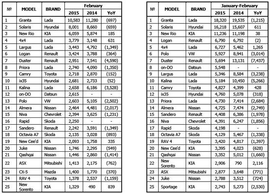 2015年2月份俄罗斯乘用车汽车销量榜的霸主,依然是伏尔加汽车公司的拉达品牌,售出2.36万辆,比上年同期的3.1万辆减少了23%。