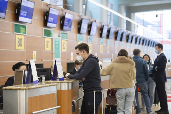 8月1日,在俄罗斯首都莫斯科的谢列梅捷沃机场,乘客在办理登机手续。(图片来源:新华社/资料图)
