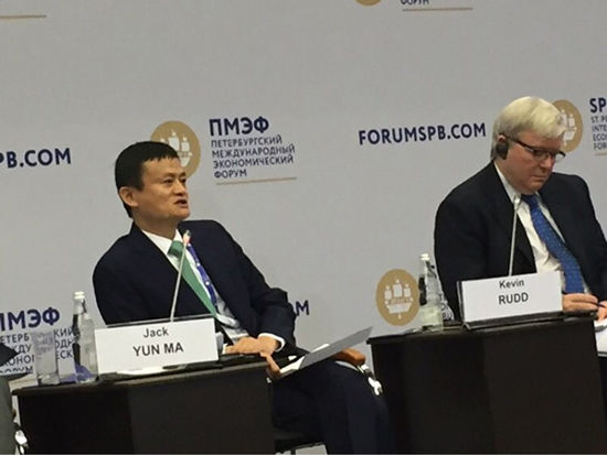 6月16日,在俄罗斯圣彼得堡举办的B20(二十国集团工商界活动)论坛上,阿里巴巴集团董事局主席马云代表中小企业组提出,建议G20国家支持建立eWTP和eroad,为全球贸易开创全新和更加开放的道路。