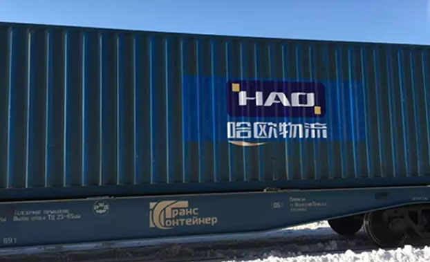 带有哈欧物流标识的集装箱抵达俄罗斯叶卡捷琳堡 9日晚,首列哈尔滨—俄罗斯国际货运班列顺利抵达终点站俄罗斯叶卡捷琳堡火车站。至此,首列哈俄集装箱货运班列圆满完成试运行,总行程5889公里,总运行时间约12天,班列上总货值近千万元的商品已分别抵达新西伯利亚、彼尔姆及叶卡捷琳堡等地。以往我国南方货物运至俄罗斯全境大约需要26天到40天时间。此次哈俄班列的首发大大缩短了中俄铁路跨境运输时间。