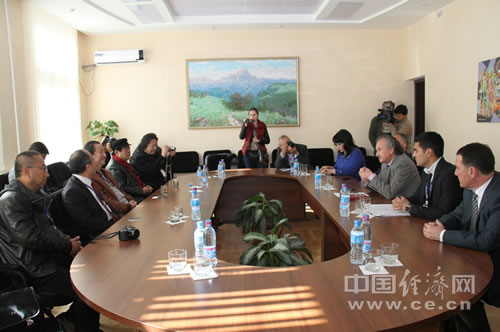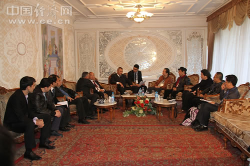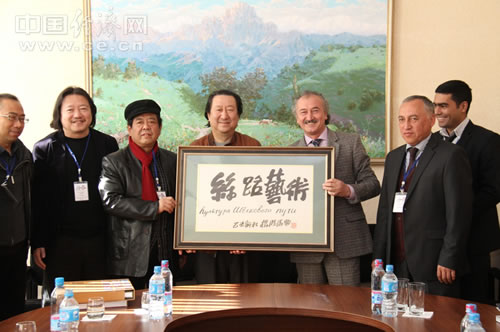 中国国家画院代表团会见乌友协副主席伊山霍扎耶夫。中国经济网记者 李垂发摄
