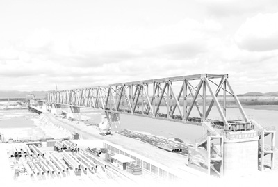中俄首座跨国铁路桥同江铁路大桥雄姿初现。 |