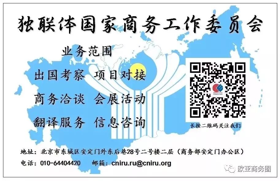 关注“欧亚商务圈”微信公众号(Cniru-zhongemaoyi)并在后台回复姓名+公司名称+公司职务+联系方式