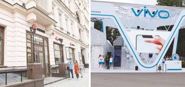 资料图:俄罗斯世界杯期间,卢日尼基体育场外的vivo手机展台。vivo手机是俄罗斯世界杯官方赞助商