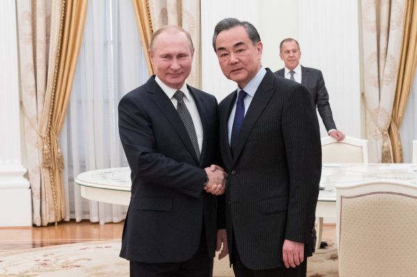 4月5日,俄罗斯总统普京在莫斯科克里姆林宫会见习近平主席特使、国务委员兼外交部长王毅。新华社记者吴壮摄