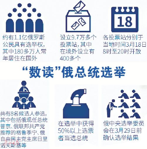 据新华社电 俄罗斯18日举行第七届总统选举,8名候选人参选,独立候选人、现任总统弗拉基米尔·普京在选前民意调查中所获支持率大幅领先。